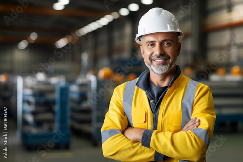 portrait, one person, engineer, confidence, industry, horizontal, man, safety, photo, adult, hard hat, working, occupation, male, headwear, factory, business, construction industry, manufacturing, young adult, warehouse, engineering, inspector, manager, construction worker, copy space, assembly line, employee, expertise, mature adult, protection, progress, planning, leadership, workshop, arms crossed, construction site, helmet, indoor, teamwork, improvement, standing, technician
