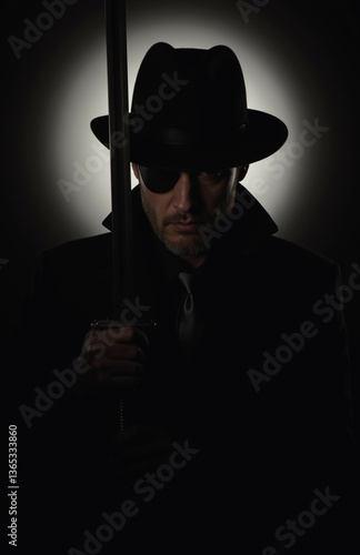 black hat, sword, backlight, cinematic, mystery, depth, intimidating, sophisticated, assertive, contrast, intrigue, danger, hat, cowboy, person, black, gangster, fashion, face, dark, suit, photogenic, retro, people, western, cigarette, guy, macho, mafia, model, style, 1, fedora, elegant, expression, cool, smoking