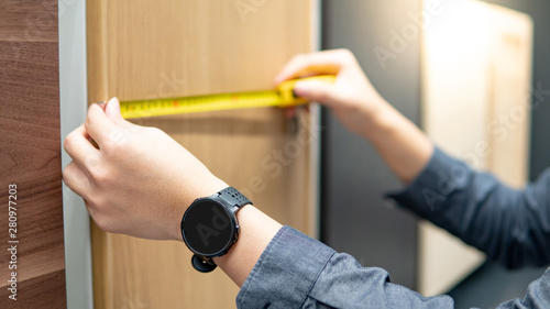 material, measure, choosing, home, design, interior, designer, cabinet, countertop, tape, measuring, top, laminate, wooden, decorator, improvement, material, cupboard, construction, renovation, building, house, architect, shop, decoration, shopping, hand, male, professional, tool, store, flooring, wall, finishing, counter, colours, table, board, kitchen, panel, room, decor, dimension, storage, watch, showroom, veneer, industry, industrial