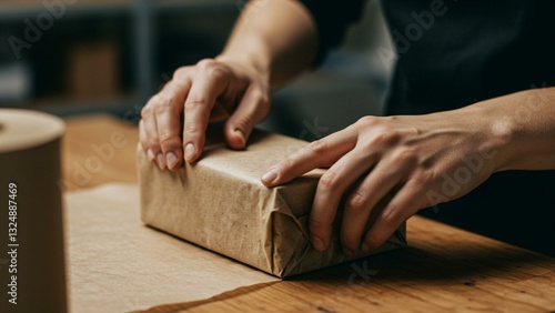 brown paper, cardboard box, gift wrapping, hand-made, small business, postal service, wrapping paper, hand, hand, closeup, closeup, people, paper