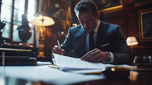 Male lawyer working with legal case document contract in office law and justice attorney lawsuit concept : Generative AI