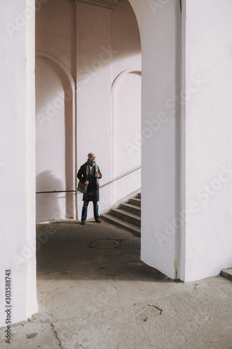 man, adult, smart, caucasian, photogenic, city, attractive, guy, active, business, businessman, traveler, wear, downstairs, coat, outside, cold, hurry, tied-up, hat, appointment, underground, meeting, travel, walk, lifestyle, young, men at work