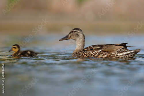 Mallard, Duck, Anas platyrhynchos - nestling with female.
