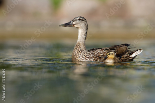 Mallard, Duck, Anas platyrhynchos - nestling with female.