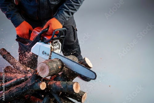 chain saw, logging, lumberjack, man, men at work, sawing, wood, tree, timbering, cutting, orange, glove, safety, equipment, industry, occupation, job, site, outdoors, nature, woodpile, log, timber, forestry, carpenter's shop, carpenter's shop, construction, heavy, machinery, power, tool, rugged, physical, labor, work, environment, conservation, energy, production, fuel, firewood, supply, storage