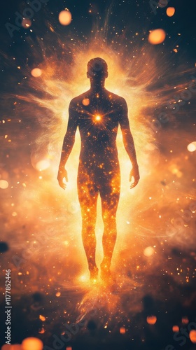glowing, man, radiant, energy, cosmic, aethereal, light, particle, warm, glow, spiritual, silhouette, illumination, confidence, universe, abstract, aglow, meditation, empowerment, mystic, body, effect, celestial, aura, inspiration, positivity, nirvana, harmony, balance, serenity, vision, creativity, imagination, calming, wellness, exploration, transcendence, field, beauty, environment, divine, awakening