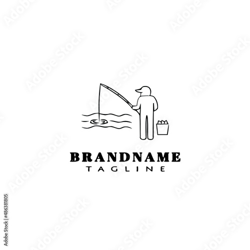 man fishing logo cartoon design template icon black isolated vector