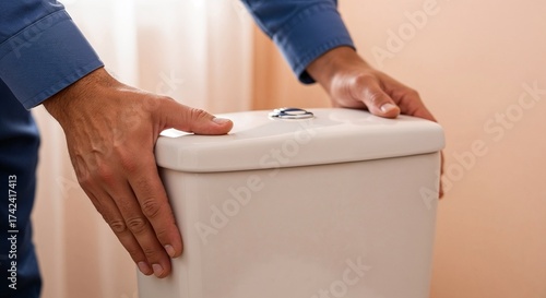 man, fixing, privies, tank, bathroom, hand, repair, indoor, plumbing, maintenance, home, standing, blue, shirt, equipment, home improvement, everyday, bricolage, residential, service, construction, working, clean, modern, white, closeup, light, comfortable, utility, task, careful, effort, skill, industry, sex, adult, repairman, house, routine, technician, male