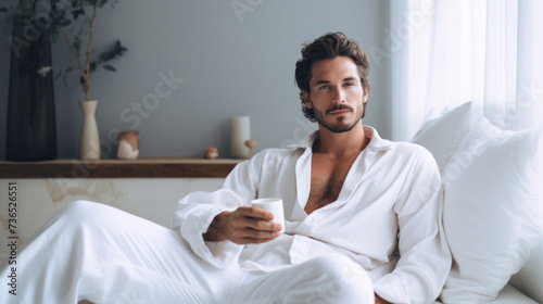 man, bathrobe, young, background, ai, towel, hair, drying, yellow, robe, home, white, male, adult, person, caucasian, lifestyle, photogenic, relax, body, morning, care, bathe, clean, posing, wellness, portrait, spa, happy, beauty, model, vacation, soft, bathroom, refreshing, healthy, shower, hygiene, early, treatment, relaxation, confident, salon, bearded man, macho, pajama, colours, guy