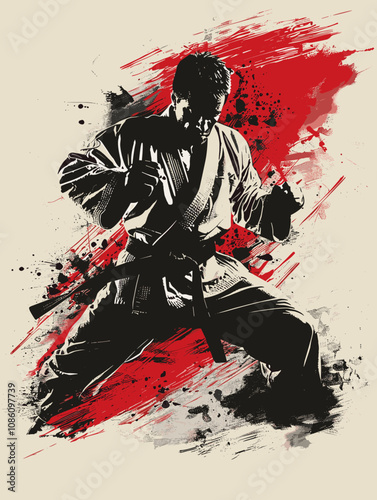 man, white, uniform, holding, red, object, standing, japanese, front, circle, art, chinese, asian, japan, illustration, traditional, design, vector, brush, character, calligraphy, oriental, background, east, symbol, ink, stroke, fighter, script, abstract, artistic, black, silhouette, paint, handwriting, samurai, china, fight, kanji, culture, paintbrush, signs, graphic, martial, warrior, combat, sword, grunge, pattern