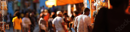 man, shirt, market, people, crowd, stall, good, display, background, blurred, sharpened, bright, warm, colours, tone, sunlight, street, seller, shopping, africa, tied-up, urban, texture, fabric, handcraft, orange, yellow, white, blue