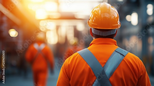 man, construction, men at work, safety, helmet, hard hat, industry, industrial, backview, orange, vest, work, job, engineer, site, uniform, manufacturing, factory, employee, professional, building, blur, people, occupation, labor