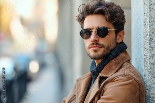 man, sunglasses, urban, fashion, style, jacket, confidence, outdoors, city, sunlight, photogenic, youth, leisure, casual attire, street, pose, background, architecture, cool, trendy, relaxed, appearance, modern, grooming, looking away, summer, portrait, facial hair, man, coolness, day, beauty, fresh, warmth, personality, exploring, smile, enjoyment, comfort, attitude
