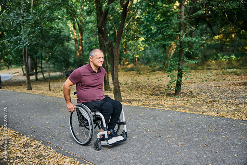 man, wheelchair, nature, accessibility, relaxing, freedom, peaceful, fence, wooden, park, pathway, calm, strolling, disability, landscape, view, solitude, zen, green, tree, summer, enjoying, joy, quiet, alone, meditation, support, mobility, travel, forest, wheel, health, horizontal, handicapped, paralysis, people, outdoors, lifestyle, smiling, leisure