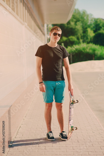 male, caucasian, mobile, young, lifestyle, portrait, photogenic, happy, man, adult, park, summer, green, professional, hair, face, alone, style, white, hand, 1, youth, fashion, modern, looking, person, light, outside, model, tree, t-shirt, skate, black, short, blue, pavement, footwear, goggles