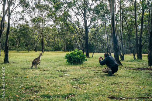 Man photographing kangaroo, Australia