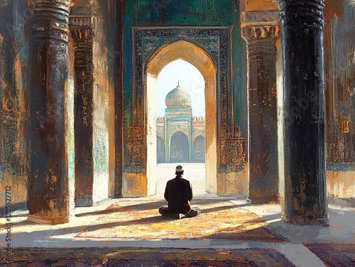 man, praying, mosque, religion, prayer, devotion, worship, spirituality, faith, peace, islam, kneeling, architecture, sacred, spiritual, holy, cultural, belief, serene, interior, traditional, meditation, quiet, connection, submission, ritual, reverence, sharpened, calm, respect, harmony, calmness, posture, solemn, atmosphere, peaceful, practice, oneness, stillness, tradition, humbleness