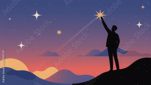 man, star, sunset, mountain, landscape, silhouette, business, inspiration, motivation, success, goal, achievement, dream, vision, leadership, ambition, sky, night, aspiration, hope, opportunity, growth, empowerment, freedom, exploration, discovery, challenge, courage, determination, progress, innovation, future, optimism, possibility, potential, change, transformation, movement, action, energy, excitement, professional, modern
