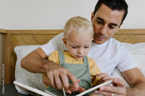 man, reading, book, son, sitting, bed, home, family, learning, education, copy space, 2, people, adult, children, boy, interior, toddler, casual attire, head shot, studying, single, father, eltern, fatherhood, leaves, modern, manhood, mid, pair, childhood, care, togetherness, caucasian, bonding, lifestyle, teaching, male