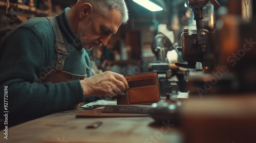 man, billfold, repair, workbench, tool, hand, mechanical, leather, craftsmanship, bricolage, hand-made, personal, finance, money, management, organisation