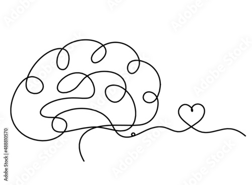 Man silhouette brain with heart as line drawing on white background. Vector