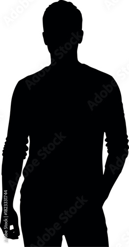 silhouette, man, standing, person, male, human, figure, isolated, cut-out, graphic, icon, shape, shadow, unknown, anonymous, profile, body, pose, adult, people, identity, symbol, casual attire, confident, minimal, abstract, user, avatar, template, conceptual