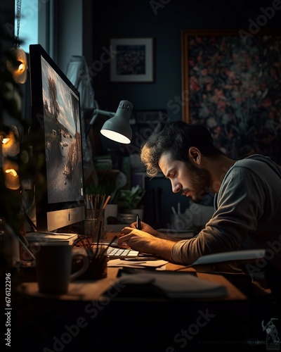 man sitting a his computer, working
