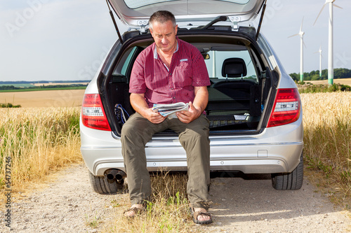 man, car, boot, sitting, control, communication, travel, map, navigation, breakdown, orientation, break, rest, coffee break, means of transportation, car, street, journey, car, waiting, drive, travel, transport, person, travel, summer, profile, country road, malfunction, stop, interruption, damaged, look, car, farmer, field, cornfield, country road, farming, ease, contented, nature, seat, idyl, check, cornfield