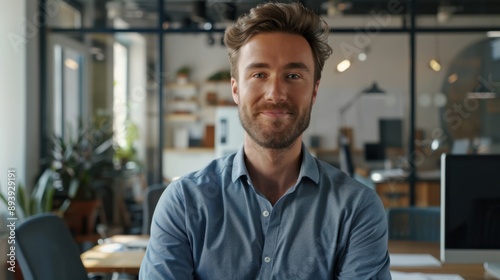 business, professional, office, desk, smile, workspace, modern, casual attire, creative, entrepreneur, industrial, corporate, innovation, technology, success, collaboration, meeting, businessman, workplace, environment, attire, furniture, team, player