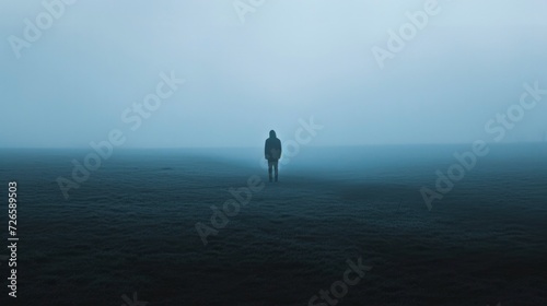 Man standing by himself in a field, in the style of mysterious.
