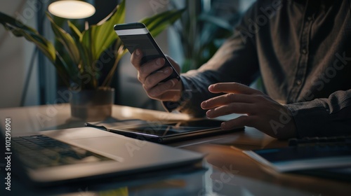 smartphone, hand, man, office, desk, laptop, technology, working, business, person, computer, digital, device, modern, workplace, wireless, cyberspace, communication, screen, table, finger, closeup, using, sharpened, professional, typing, electronic mail, social, media, productivity, networking, online, app, datum, connection, keyboard, monitor, white, grey, black, electronic, contraption, tool