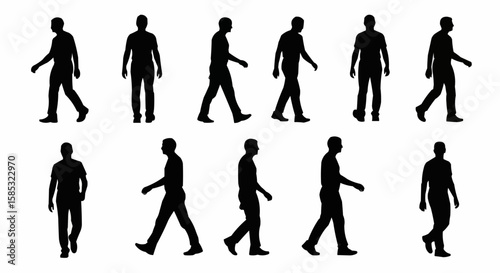 Man Walking Silhouette Set – Includes Normal Walking Poses in Vector Style on White Background