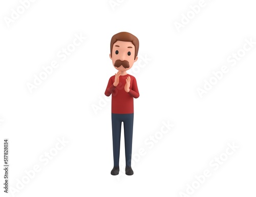 three-dimensional, character, moustache, man, clap, hand, palm, gesture, look, audience, good, proud, applaud, happy, applause, give, joy, like, job, admire, support, male, father, person, guy, uncle, red, figure, shirt, father, cartoon, rendering, advertisement, animation, white background, stylised, isolated, illustration, body, cute, art