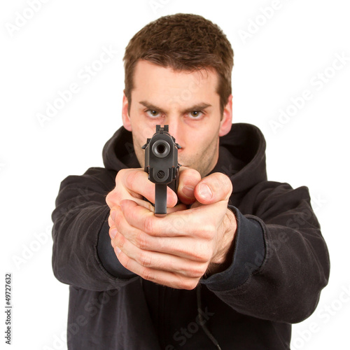 aim, aiming, arm, assassin, attack, bad, bandit, building, bullet, burglar, corruption, crime, criminal, danger, dangerous, death, fear, firearm, gangster, gun, handgun, illegal, indoor, isolated, kill, man, mugger, murder, parking, person, handgun, pointing, protection, robber, robbery, safety, scarey, security, shoot, straight, target, terror, terrorist, thief, threat, violence, weapon, white, young