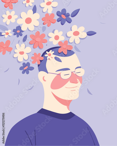 Man with flowers on his head. Vector illustration in flat style.