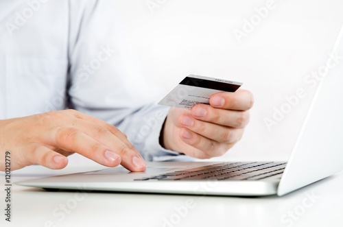cyberspace, shopping, credit, card, laptop, business, shirt, man, hold, hand, bank, white, sun, light, caucasian, technology, computer, shop, watch, making, home, payment, online, businessman, human, unrecognizable, consumerism, finance, process, money, keyboard, debit, client