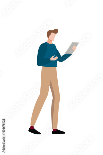 man working, businessperson, illustration, vector, business, woman, standing, people, businessman, smiling, student, holding, person, computer, book, men at work, reading, education, office, laptop, secretary, businesswoman, 1, guy, teacher, occupation, isolated, working, job