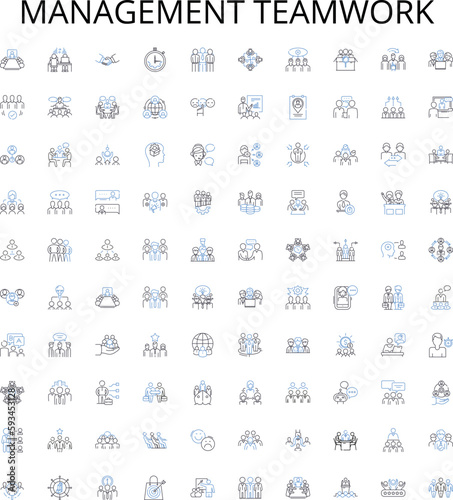 Management teamwork outline icons collection. Teamwork, Management, Collaboration, Efficiency, Working, Organization, Cohesion vector illustration set. Communication, Unity, Relationships linear signs