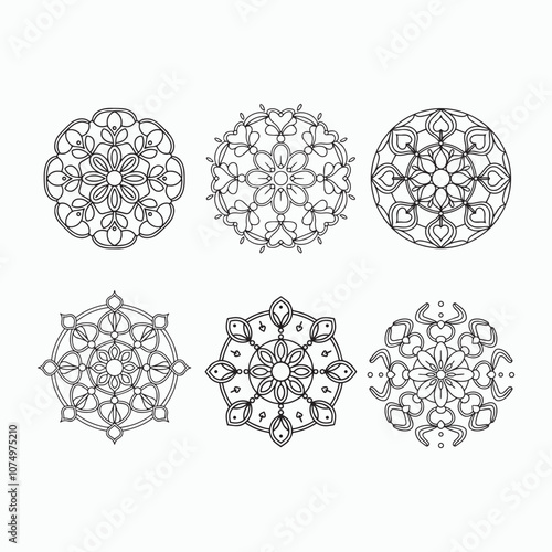 mandala, circle, snowflake, pattern, vector, ornament, design, decoration, flower, illustration, floral, christmas, art, set, seamless, snow, winter, vintage, element, wallpaper, shape, symbol, tattoo, holiday, lace