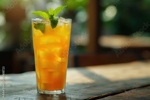 food, fruit, tea, lemon, ice, cocktail, glasses, healthy, mango, bubble, yellow, drink, beverage, herb, mint, glacé, passion fruit, citrous, brown, cold, fresh, object