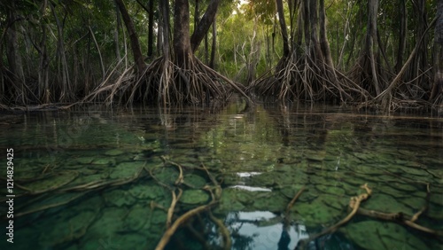 mangrove, forest, underwater, root, mystical, aethereal, landscape, nature, ecology, environment, conservation, ecosystem, tropical, jungle, green, water, aquatic, marine life, natural, beauty, calmness, serenity, peaceful, calm