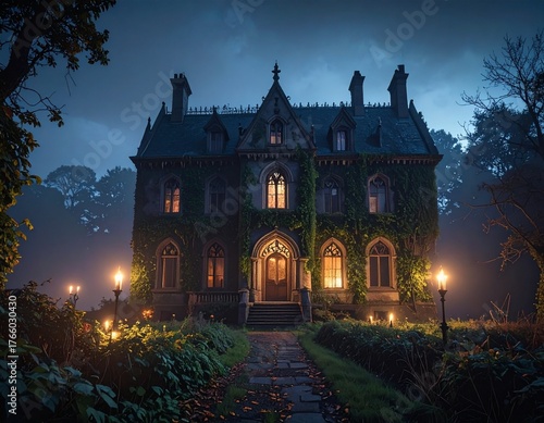 Manoir abandonné éclairé à la bougie – mystère et élégance gothique d’Halloween
