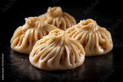 Manti isolated black background studio lighting traditional Turkish pasta dumplings food