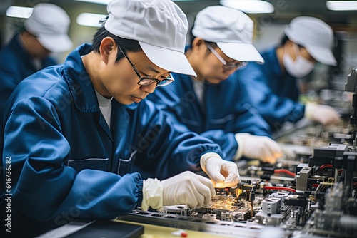 manufacturing process in a Chinese modern factory, including assembly lines, quality control, Generated with AI