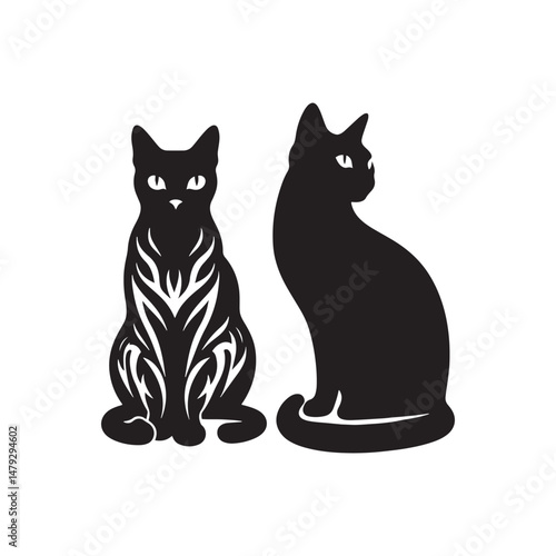 Manx Cat Vector Silhouette: Tailless Feline in Striking Profile, Showcasing Unique Breed Features for Artistic Illustrations, Pet Logos, Minimalist Designs, and Creative Animal-Inspired Graphic Projec