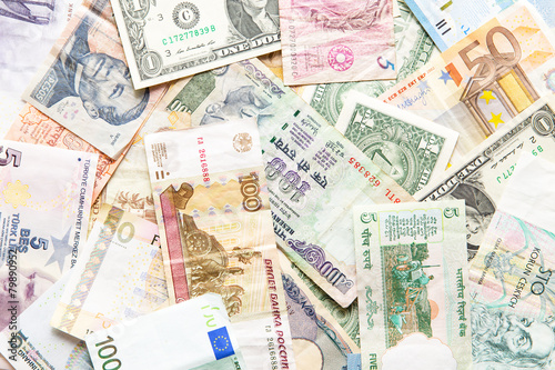 many different currencies as background