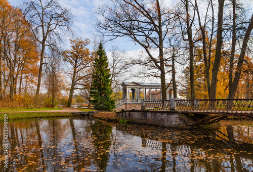 Marble Bridge. Autumn Park. Catherine Park. Pushkin, St. Petersburg, Russia