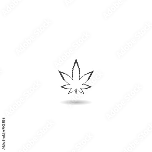 Marijuana leaf or cannabis leaf weed icon with shadow