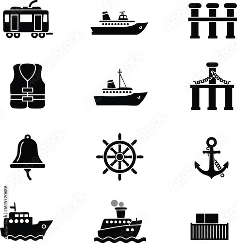 Maritime Shipping & Nautical Elements Icon Sheet