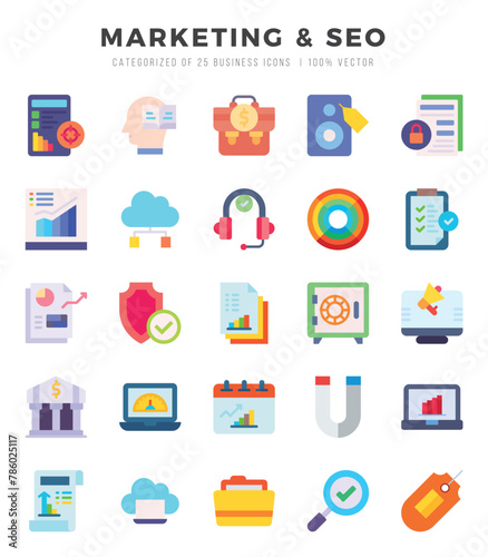 Marketing & Seo icons set. Vector illustration.